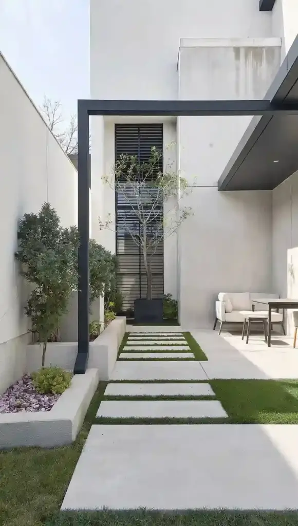For a sleek and contemporary look, consider a minimalist backyard design. Use neutral colors, clean lines, and geometric shapes. Incorporate materials like concrete, metal, and stone for a modern feel, with simple, functional outdoor furniture. This design works well for those with smaller yards or urban spaces.