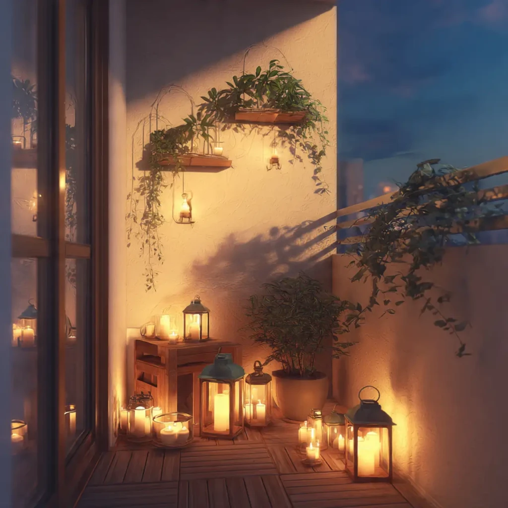 Fairy lights add a soft glow that transforms your balcony at night. Warm lighting creates a peaceful atmosphere and makes the space feel magical.