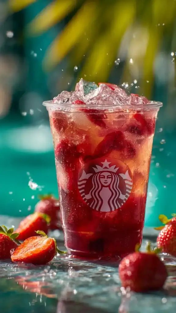 If you’re craving something fruity 🍓, the Strawberry Acai Refresher is a vibrant option that blends sweet strawberry acai juice with freeze-dried strawberries and ice. It’s both hydrating and sweet, perfect for a hot day ☀️.