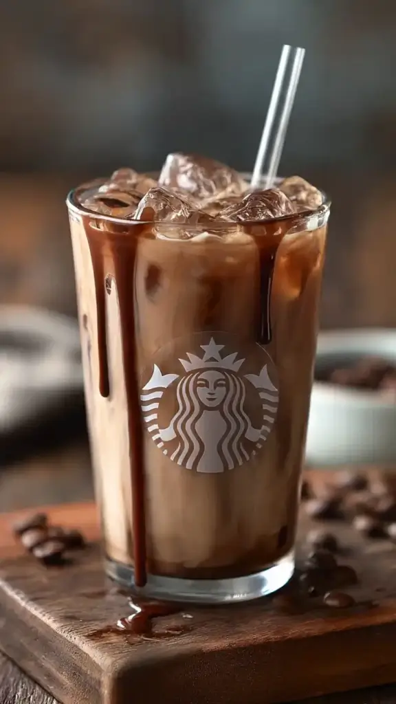 Say, “Grande Iced Coconut Milk Mocha Macchiato with extra mocha drizzle.” The extra mocha drizzle takes it to the next level of indulgence.