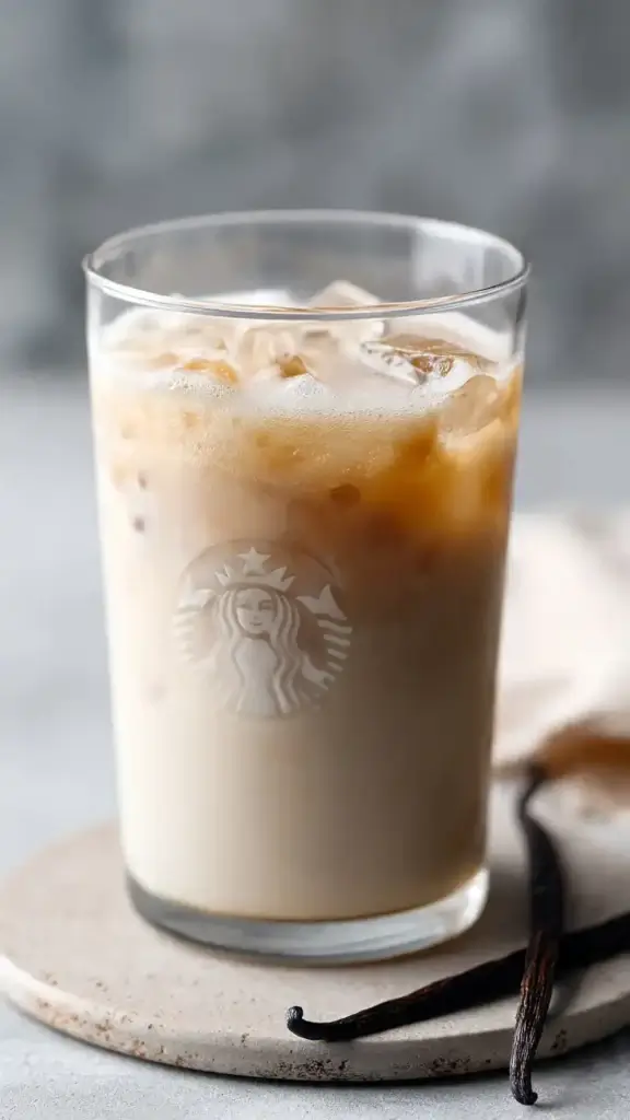 Say, “Grande Iced Vanilla Latte with almond milk.” Customize it with a different milk (like oat or coconut) if you prefer a dairy-free option.